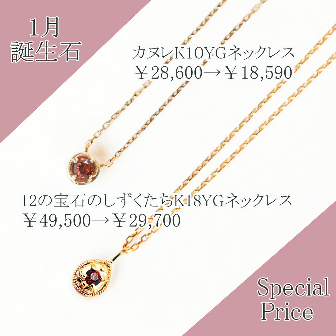 大切な方へのお誕生日ギフト、ご自身へのお誕生日記念としてお買い求めやすく特別にその月だけのお買い得商品をご用意いたしました。誕生石のネックレスは欲しかったけどちょっとお値段が高くて迷っているというお客様、是非こちらのネックレスをおすすめ致します♪