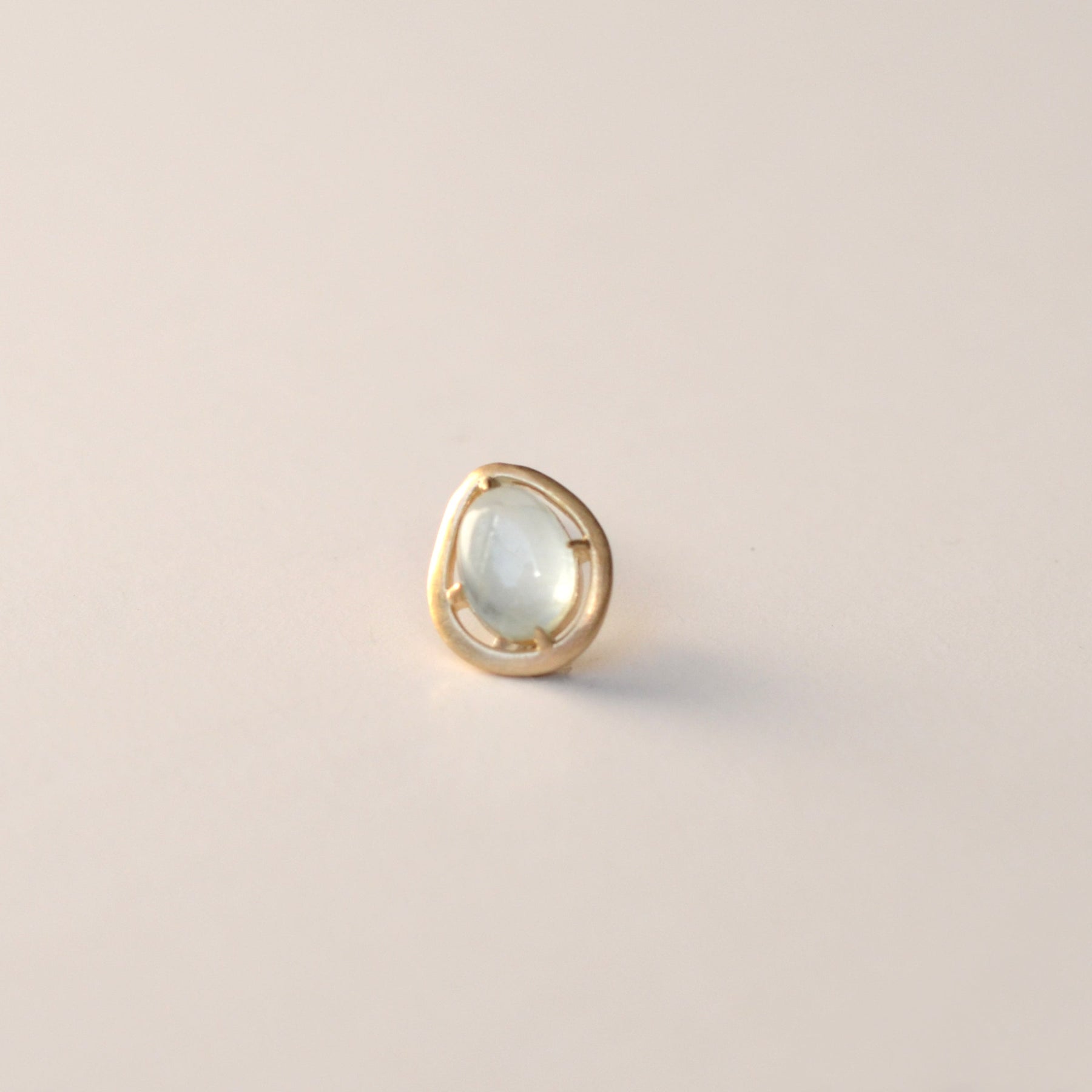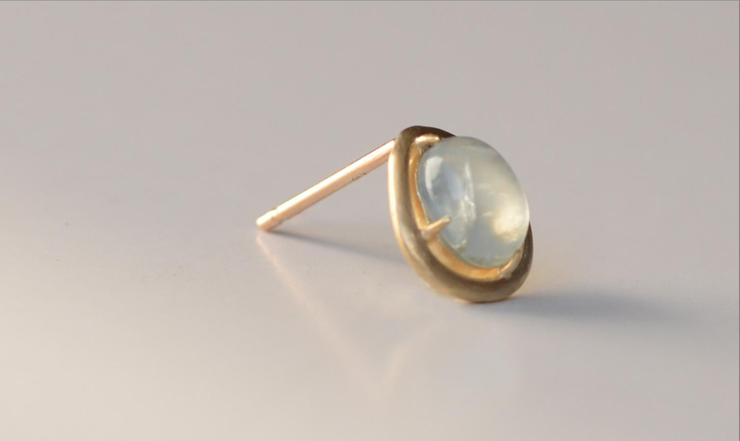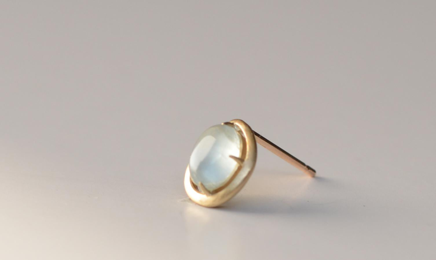 ラフカットしたミルキーアクアマリンを4本の爪で留めたピアス。 こだわりのカットが愛着をわかせ、いつまでも身につけたいと思わせてくれるアイテムです。