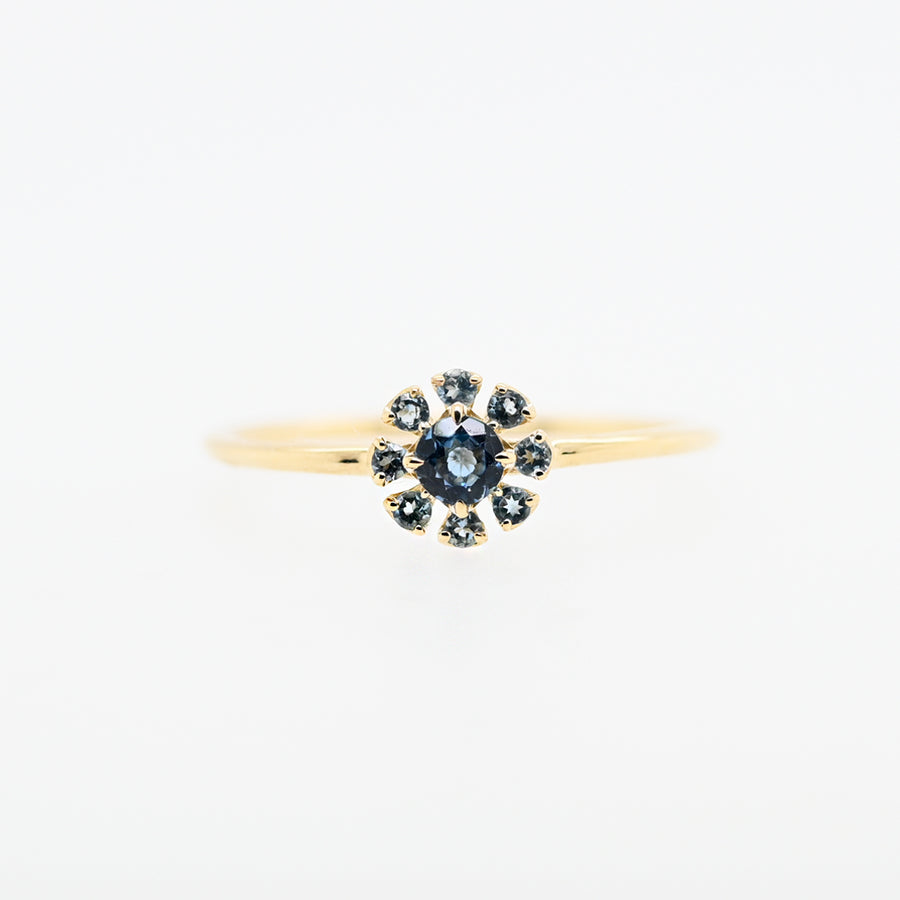 その名の由来からその昔船乗りが航海の際に身に着けてお守りにしていました。今回のコレクションはアクアマリンの価値で最高峰とされるサンタマリアアクアマリンをセンターにし淡いアクアマリンで取り巻き可愛らしく仕上げました。ギリシャ神話の時代から世界中の物語の中で「幻の花」や「存在しないもの」「探し求めるもの」などの象徴とされる可憐な青い花を作りました。