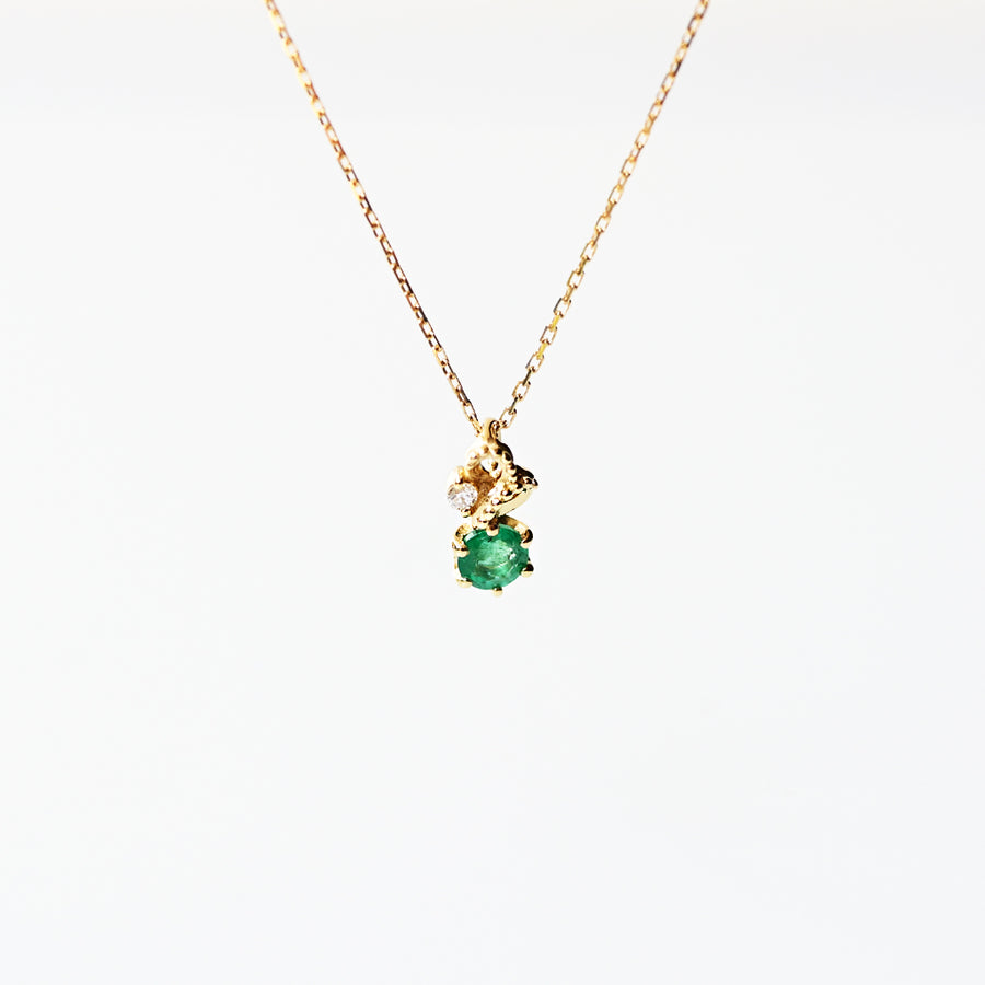 ミルグレンを用いて描いた唐草模様とダイヤモンドがラウンドのエメラルドのきらめきを引き立ててくれます。