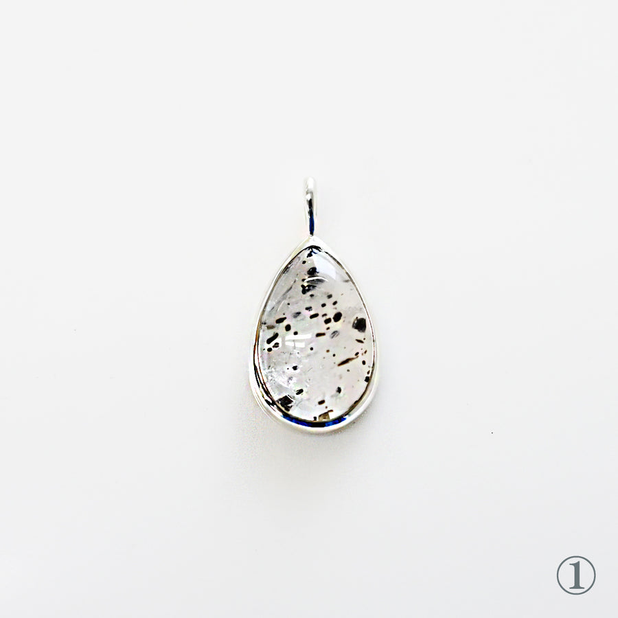 透明感のあるクォーツの内部に、黒みを帯びたマーカサイトを内包した希少な天然石「マーカサイトインクォーツ」。