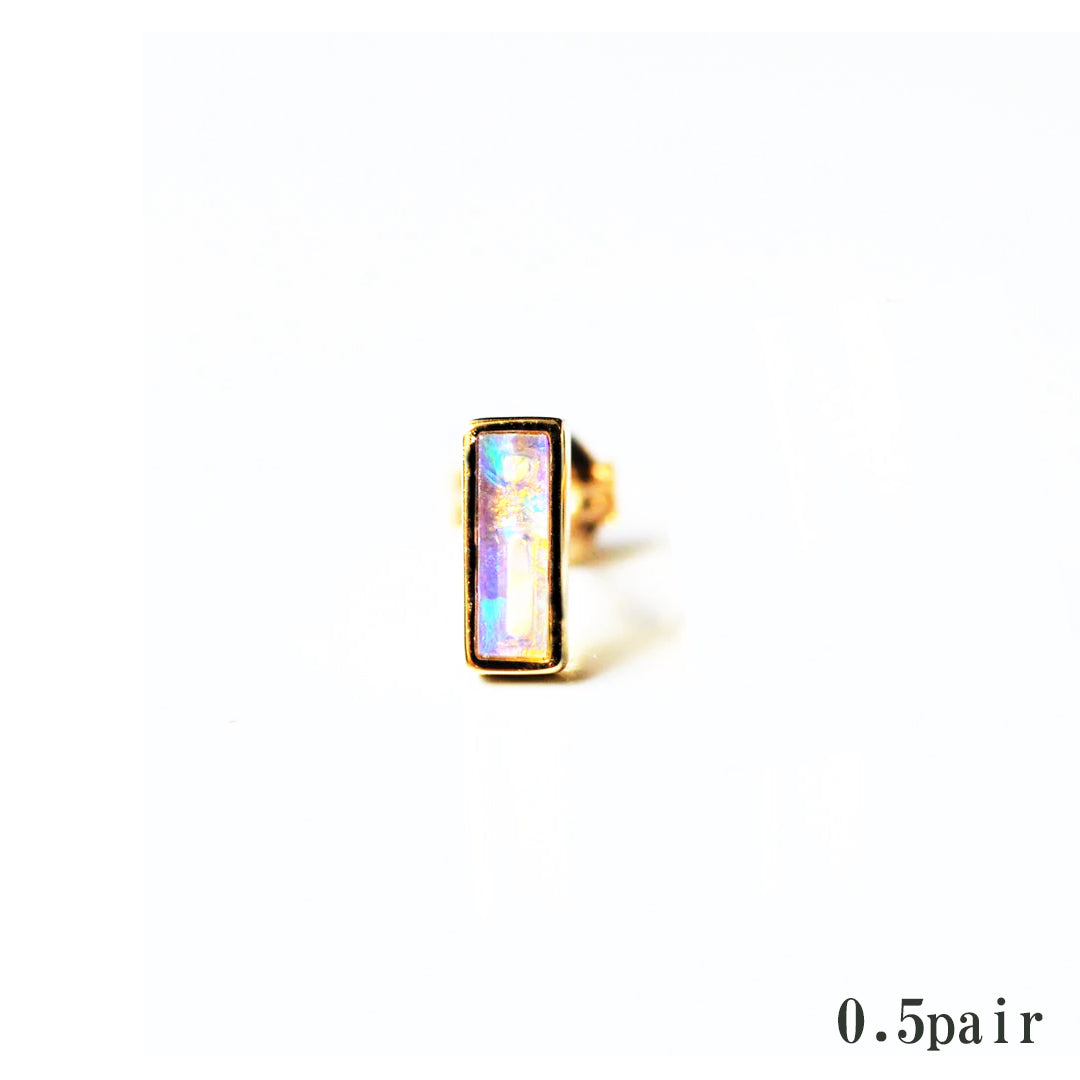 色彩豊かなオパールを長方形にオリジナルカットしたモード感のあるピアス。