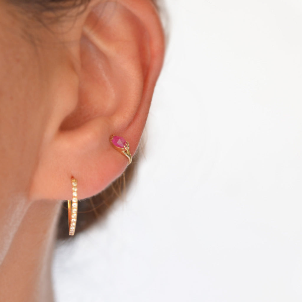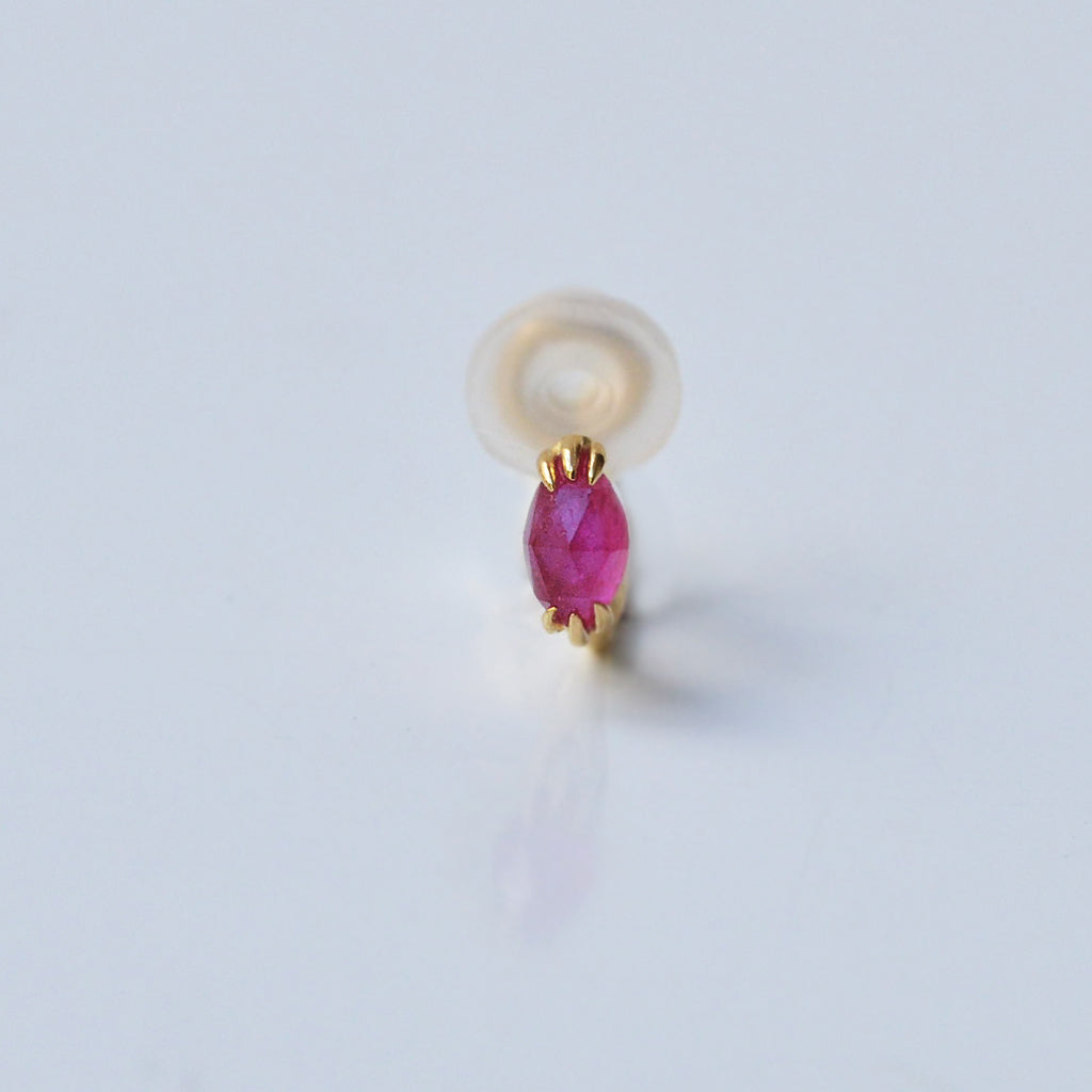 ラフカットしたルビーを6本の爪で留めたクリップイヤリング。