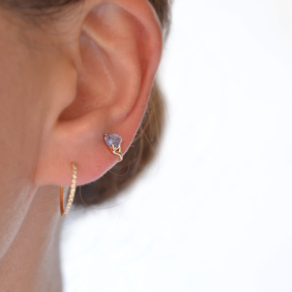 ラフカットしたタンザナイトを3本の爪で留めたこだわりが愛着をわかせ、いつまでも身につけたいと思わせてくれるアイテムです。