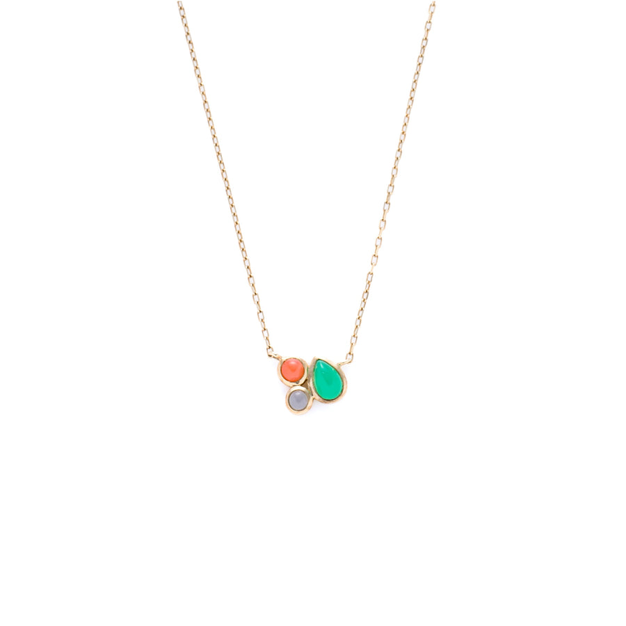 3石それぞれ異なるカットのカラーストーンをセットしたデザインはナチュラルなテイストになりすぎず、個性を演出できるスグレモノです。