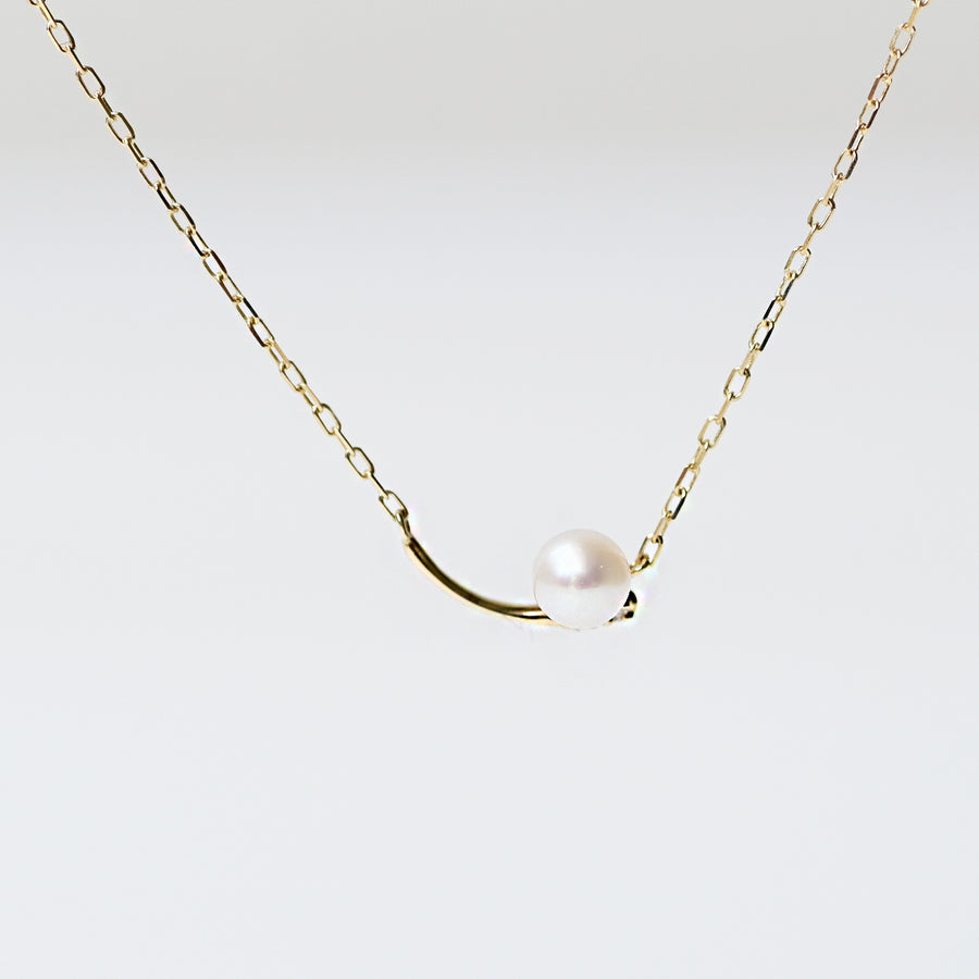 シンプルなチェーンに一粒の真珠が添えられています。金の温かい輝き、真珠の柔らかな光沢、ダイヤモンドのきらめきが織りなす三重奏は、日常からちょっとしたお呼ばれまで幅広いシーンで活躍。
