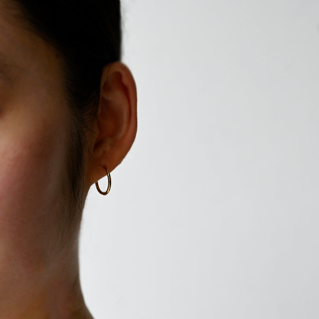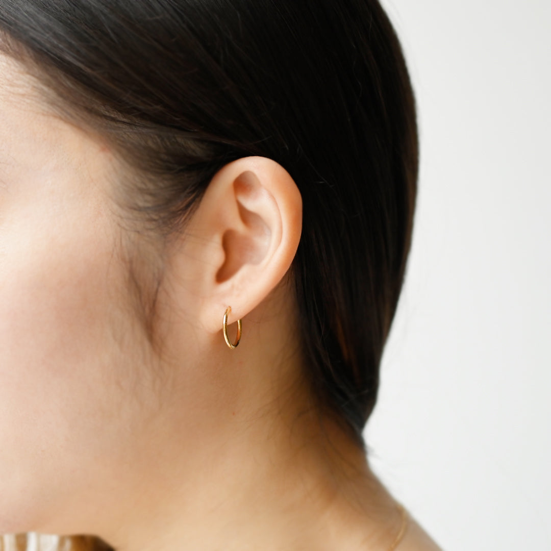 シンプルな円のフォルムに閉じ込めたフープピアスです。