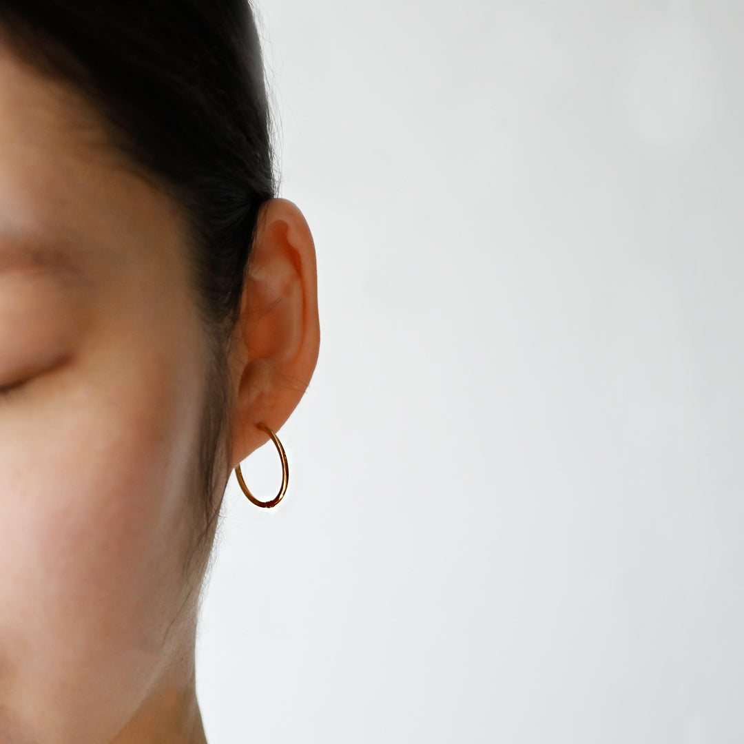シンプルな円のフォルムに閉じ込めたフープピアスです。