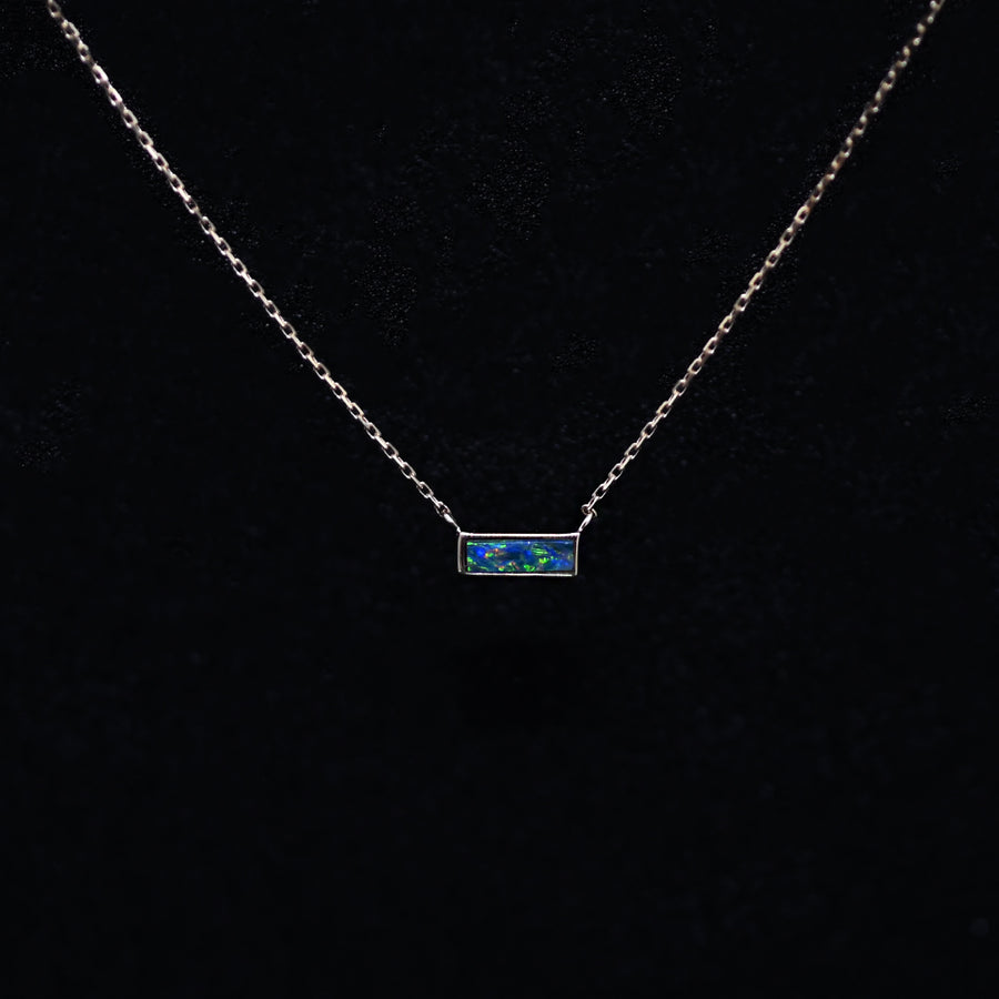 黒の静寂に秘められたオニキスの上でオパールがささやくように光を放つ。