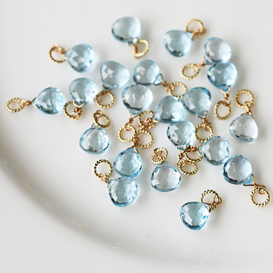 透き通るような淡いブルーが爽やかな印象を与える、ブルートパーズのチャームです。