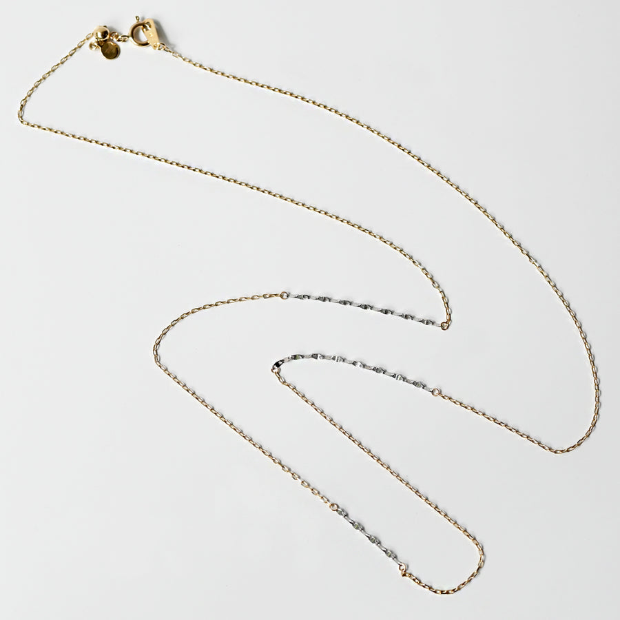 K10YGとK10WGのチェーンを繋いだ変化のある煌めきを楽しめるジュエリーです。