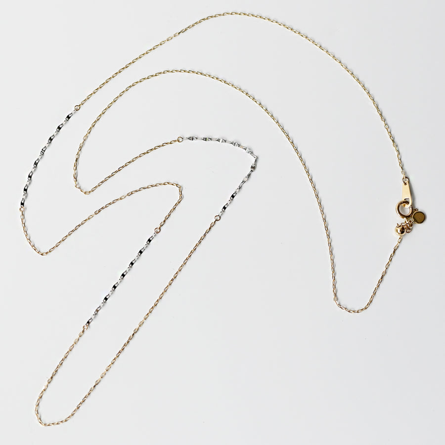 K10YGとK10WGのチェーンを繋いだ変化のある煌めきを楽しめるジュエリーです。