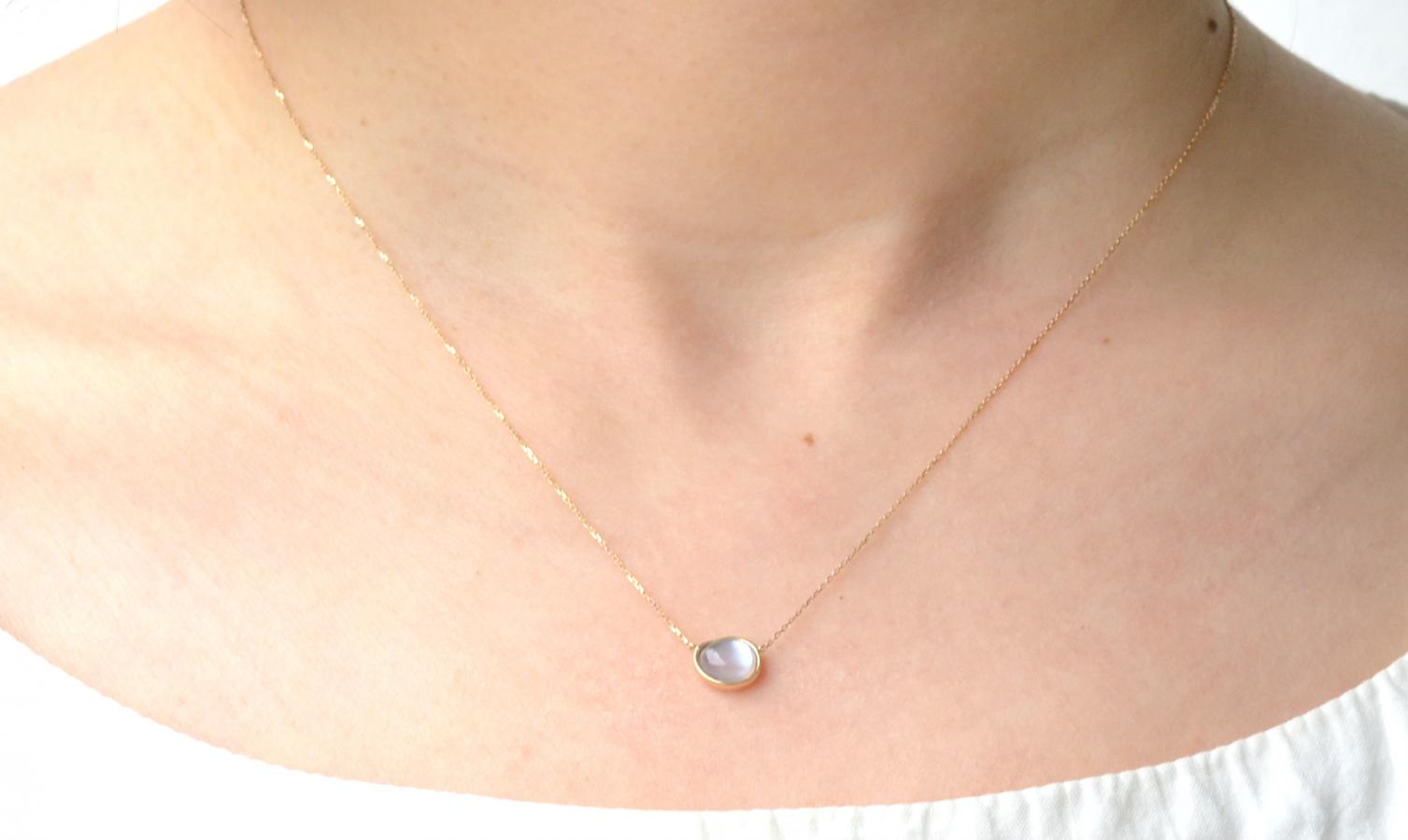 地肌の上から着けた状態とお洋服の上から着けた状態との天然石の色合いの違いを楽しむことが出来ます。