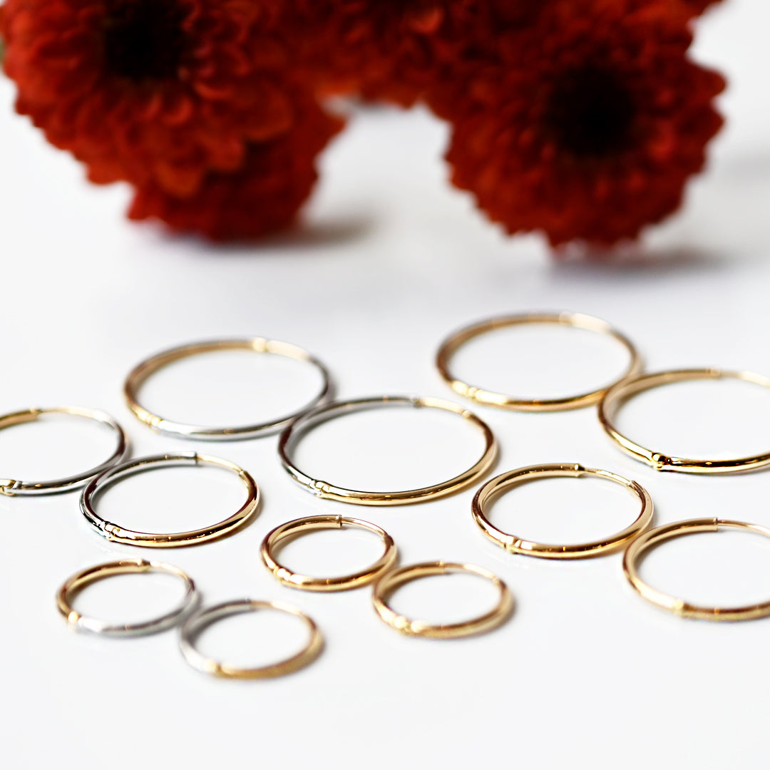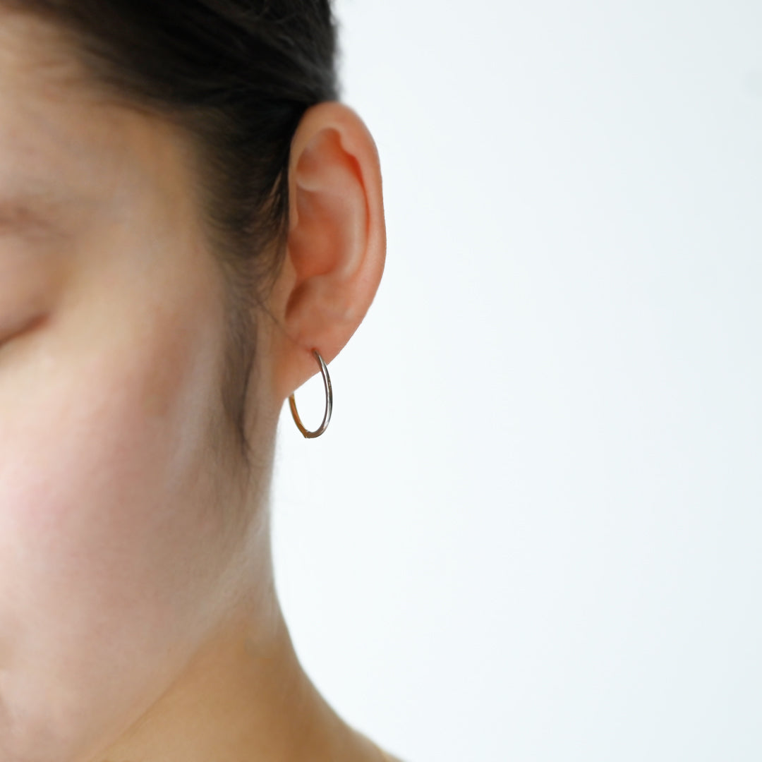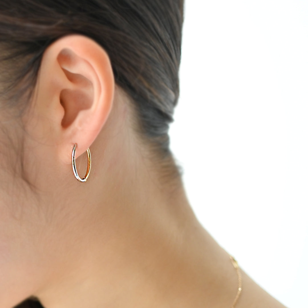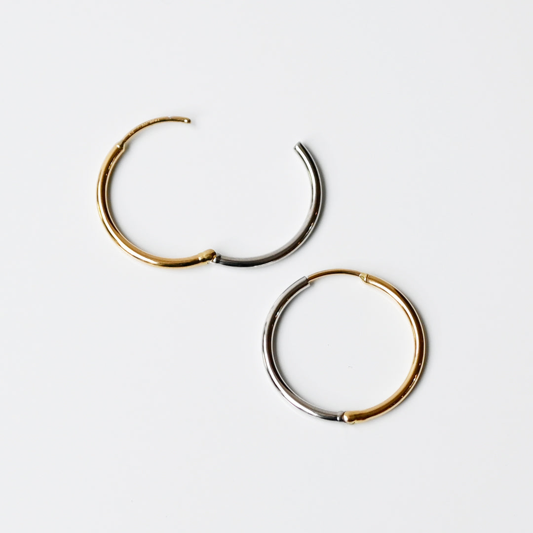 2つの貴金属がひとつの円に美しく溶け合った、洗練されたフープピアスです。