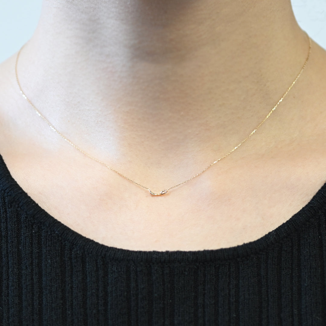K10YGの小さなはためきが温かい風を運ぶように胸元を軽やかに演出します。