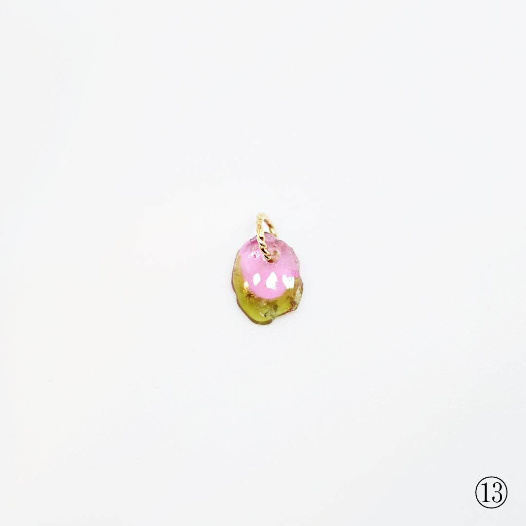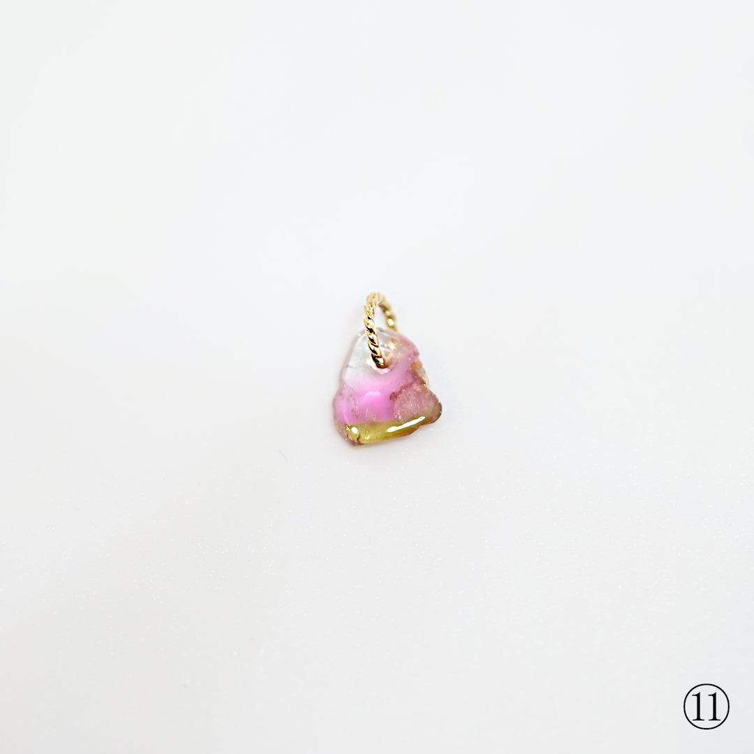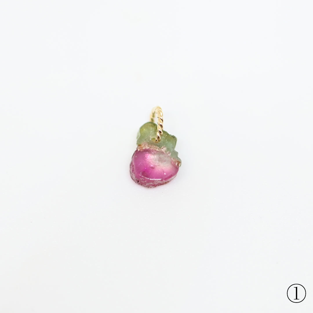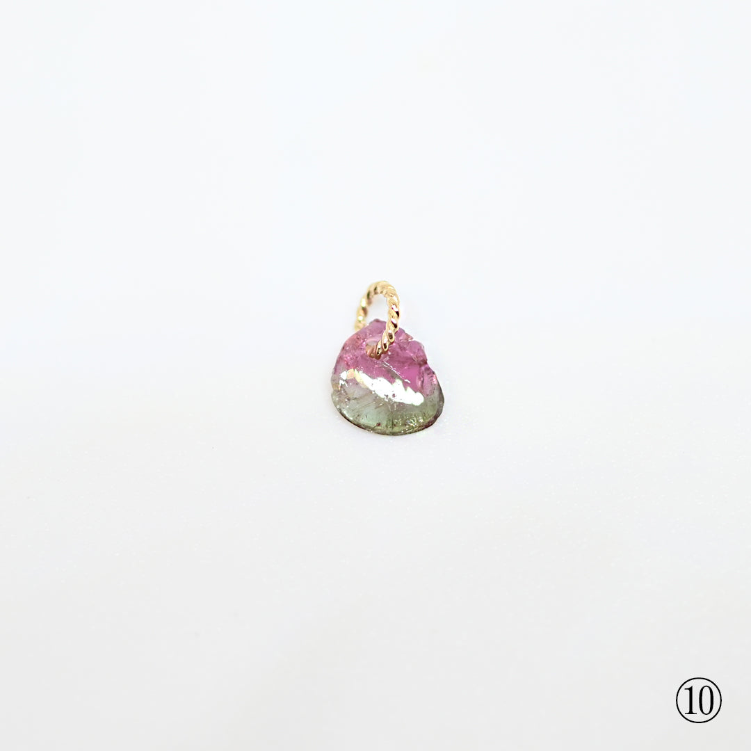 バイカラートルマリン(Bicolor Tourmaline)は、1つの結晶の中に2色以上が自然に共存するトルマリンのことを指します。その色合いのグラデーションやコントラストがとても美しく、コレクターからも人気の高い宝石です。今回のチャームは1点1点の個性が引き出されたチャームです。13個限定の1点物です。お見逃しなくご覧くださいませ。