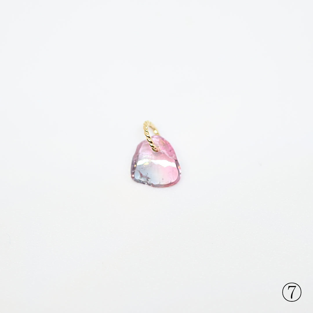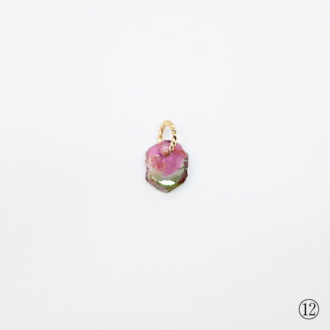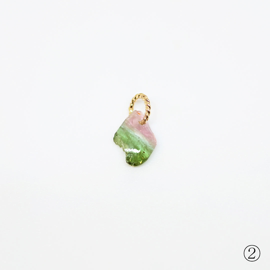 バイカラートルマリン(Bicolor Tourmaline)は、1つの結晶の中に2色以上が自然に共存するトルマリンのことを指します。その色合いのグラデーションやコントラストがとても美しく、コレクターからも人気の高い宝石です。今回のチャームは1点1点の個性が引き出されたチャームです。13個限定の1点物です。お見逃しなくご覧くださいませ。