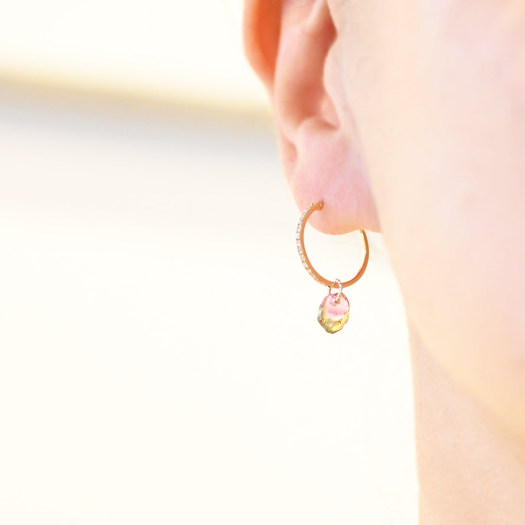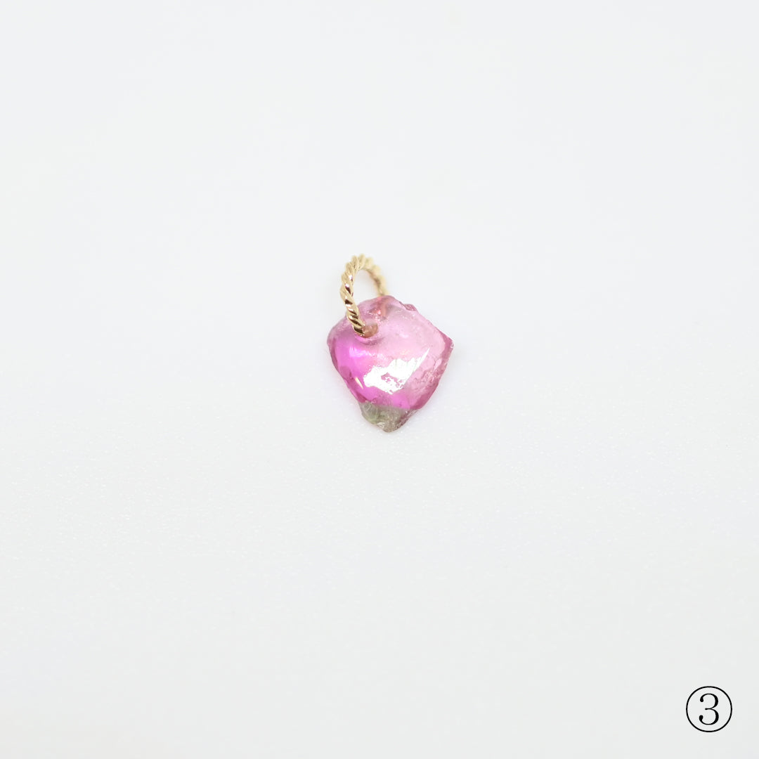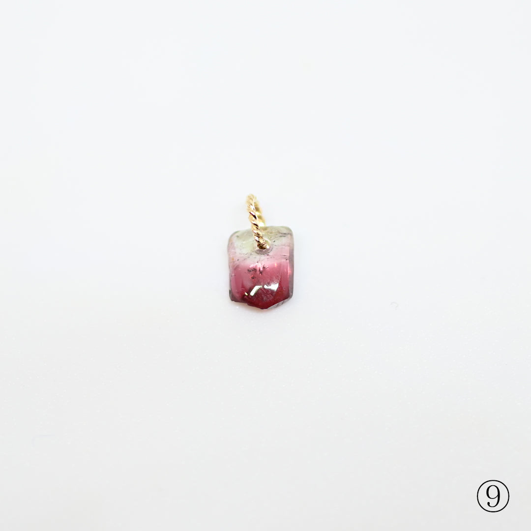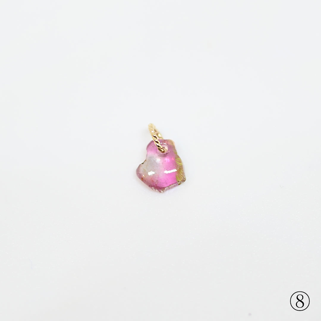 バイカラートルマリン(Bicolor Tourmaline)は、1つの結晶の中に2色以上が自然に共存するトルマリンのことを指します。その色合いのグラデーションやコントラストがとても美しく、コレクターからも人気の高い宝石です。今回のチャームは1点1点の個性が引き出されたチャームです。13個限定の1点物です。お見逃しなくご覧くださいませ。