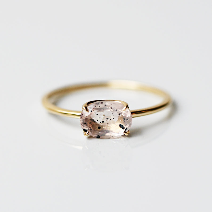 ローズクォーツはみなさんご存知の有名な宝石ですが、マイカインローズクォーツはレアストーンです。通常のローズクォーツよりも甘さを感じないイメージなので大人の女性もサラッと着けこなしたくなるイメージです。