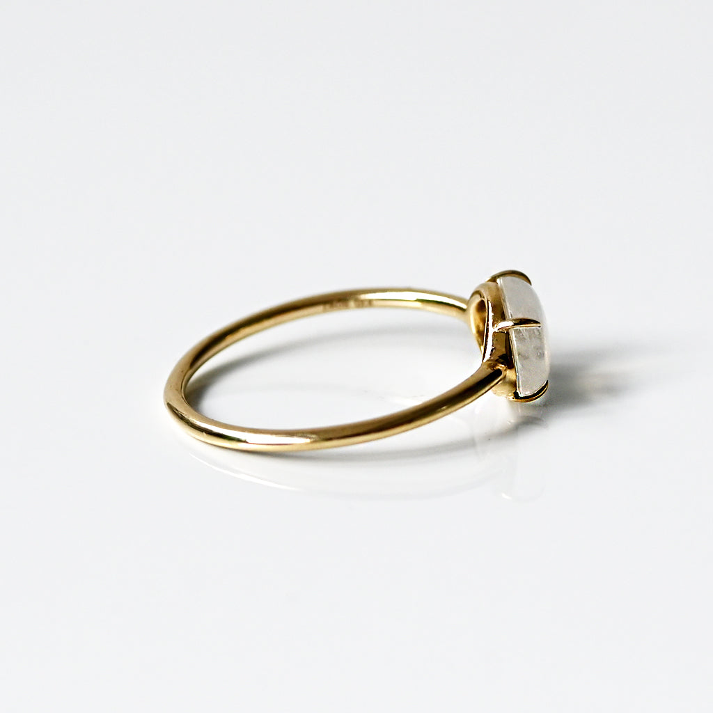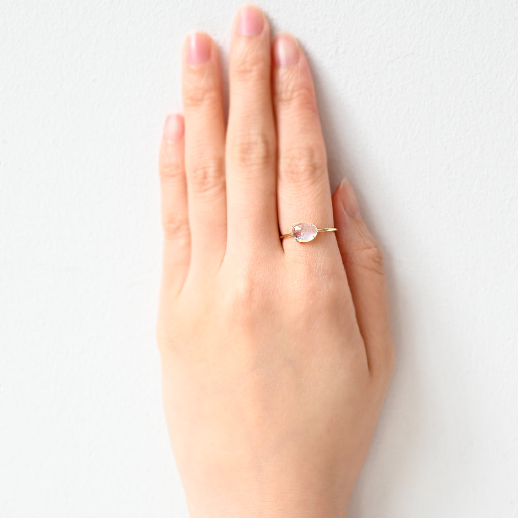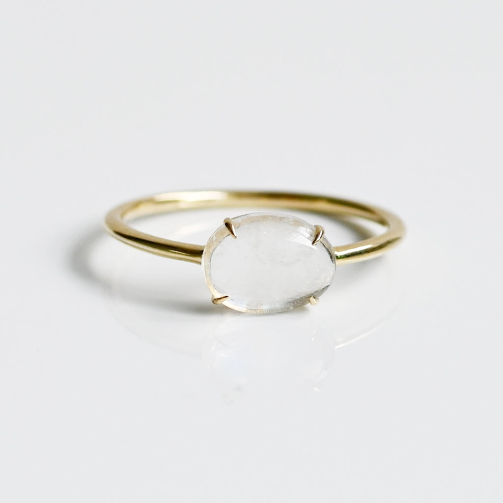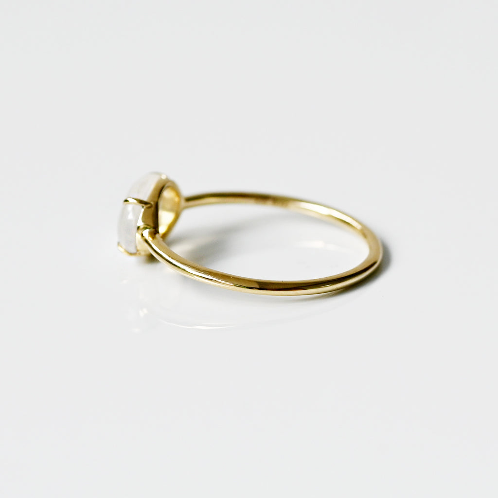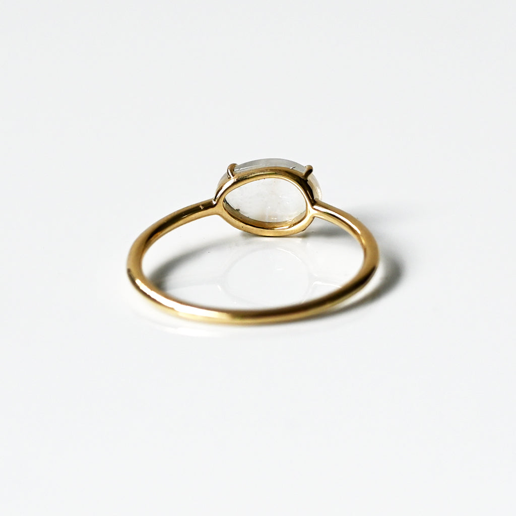 つるんとしたカボションカットのレインボームーンストーンが可愛らしいリング。
