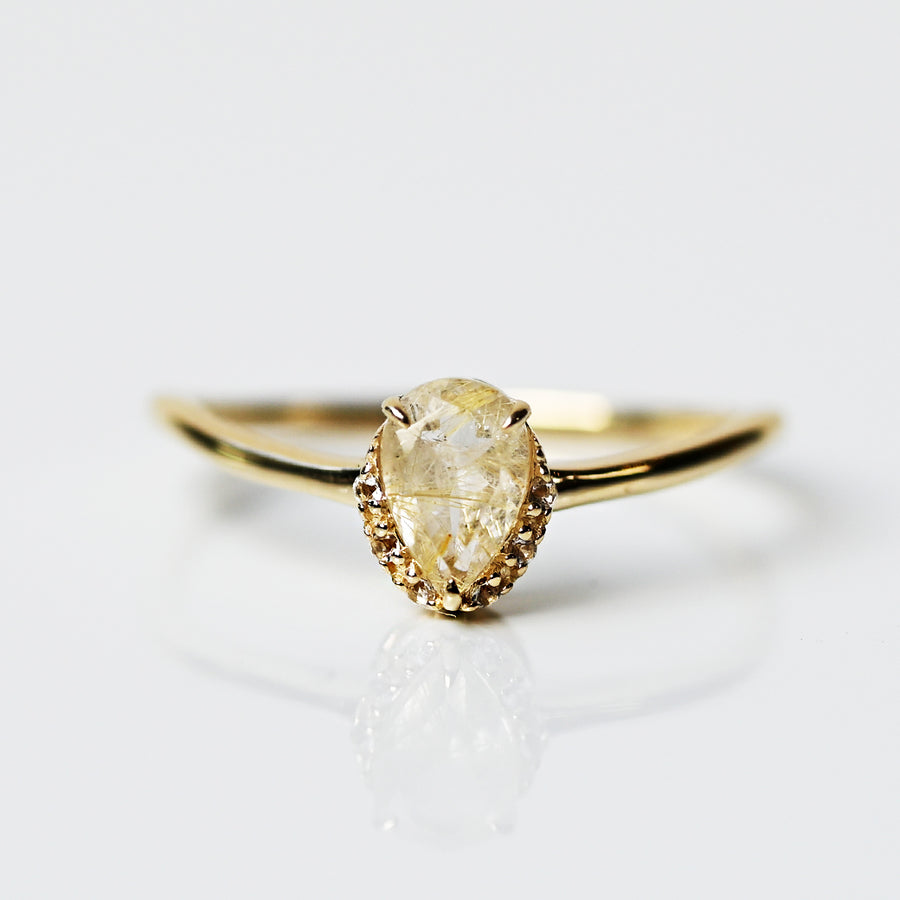 蕾の形のゴールデンルチルクォーツの周りに纏うようにセッティングされたホワイトトパーズが瑞々しい輝きをプラスします。