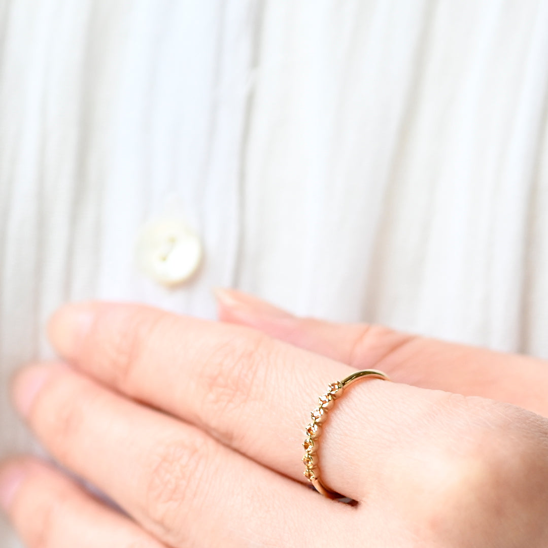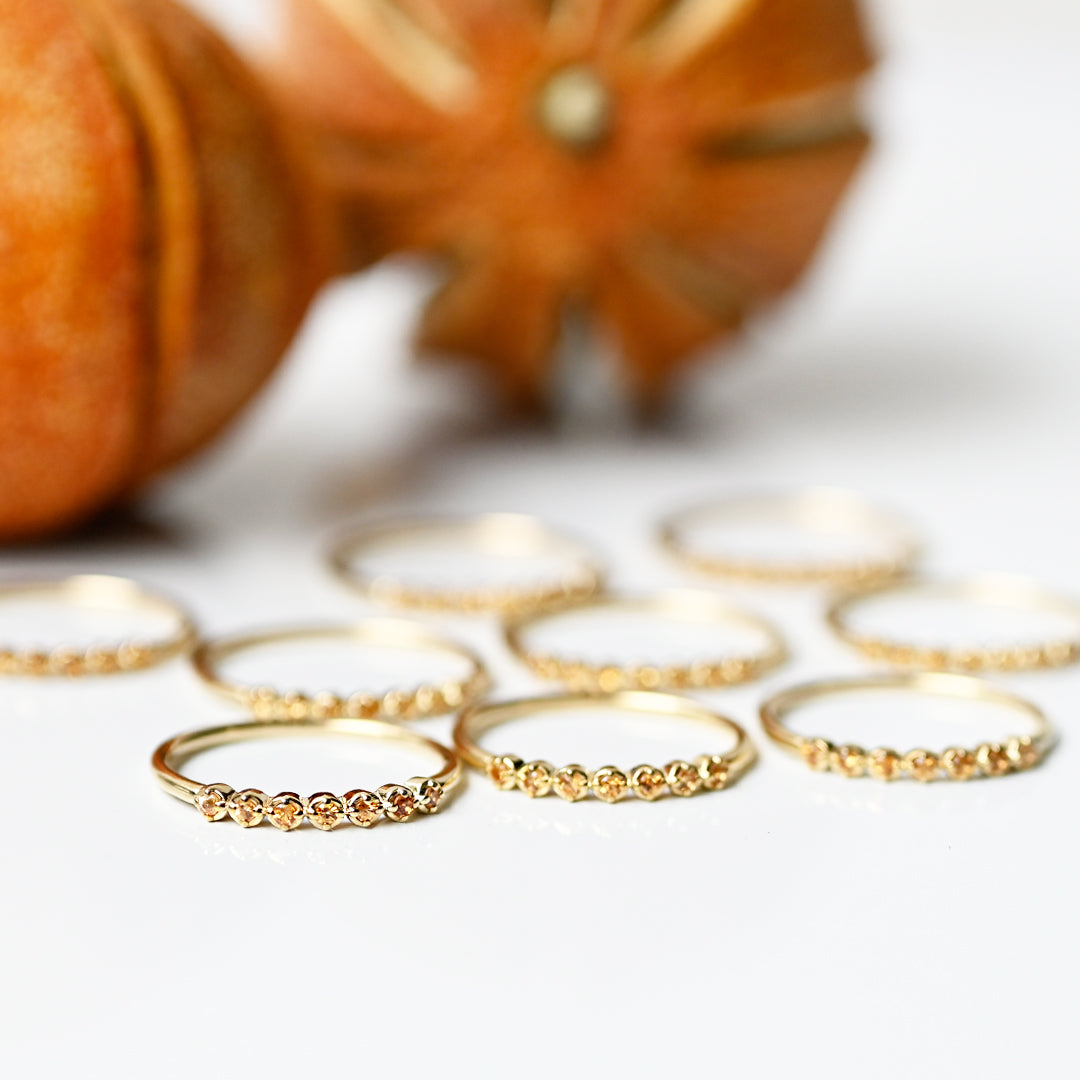 今回のColorfulコレクションのリングは1月誕生石のガーネットをオレンジガーネットを使用しておつくり致しました。